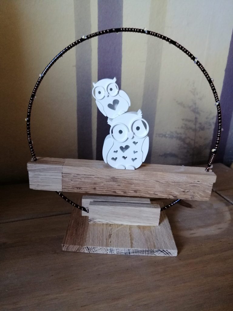 Metallring mit einer Eule 6cm & eine 4cm in verschiedenen Ausführungen der Trockenblumen zum hängen und aufstellen