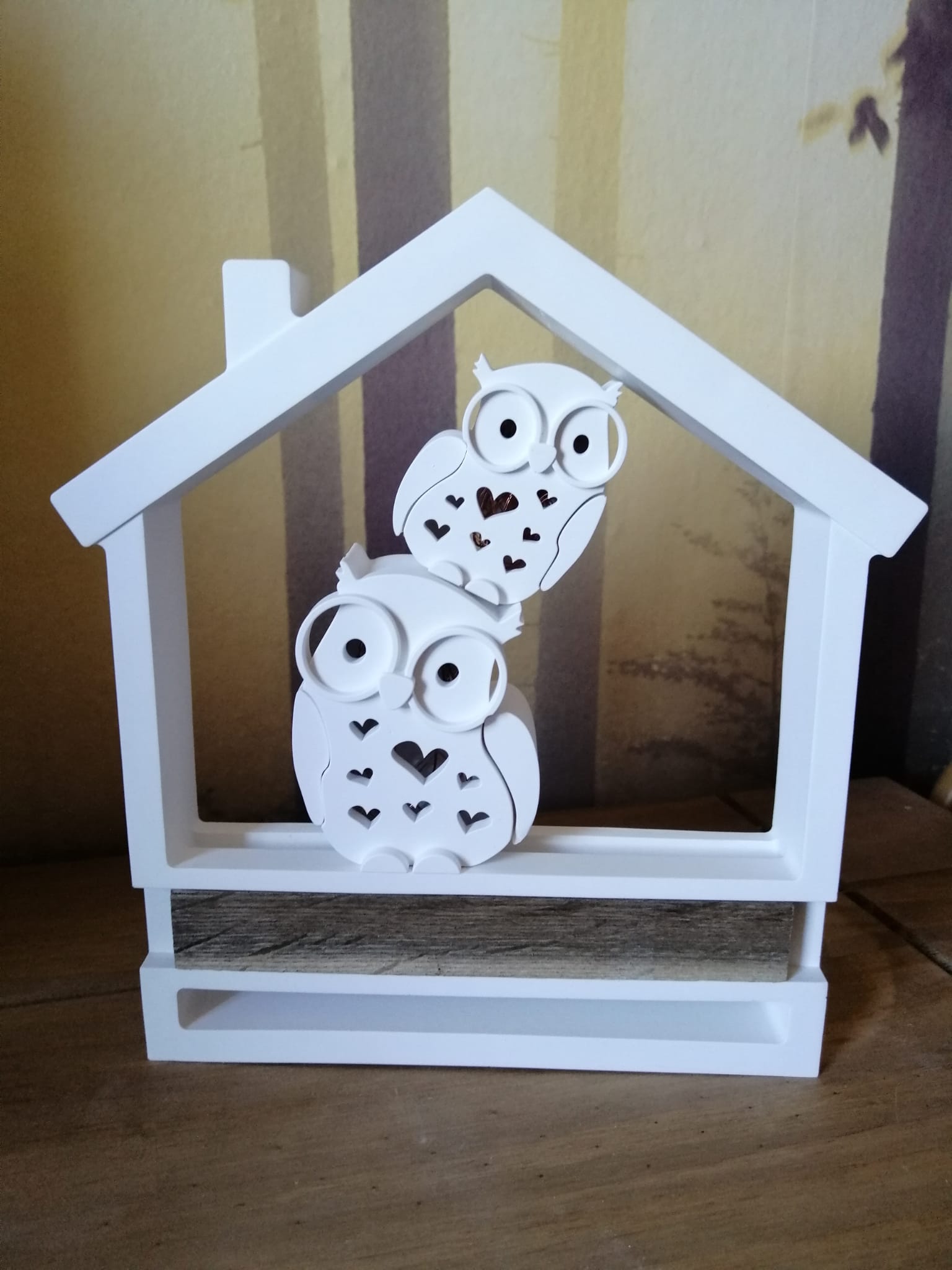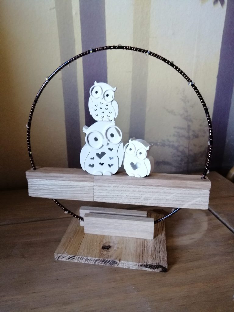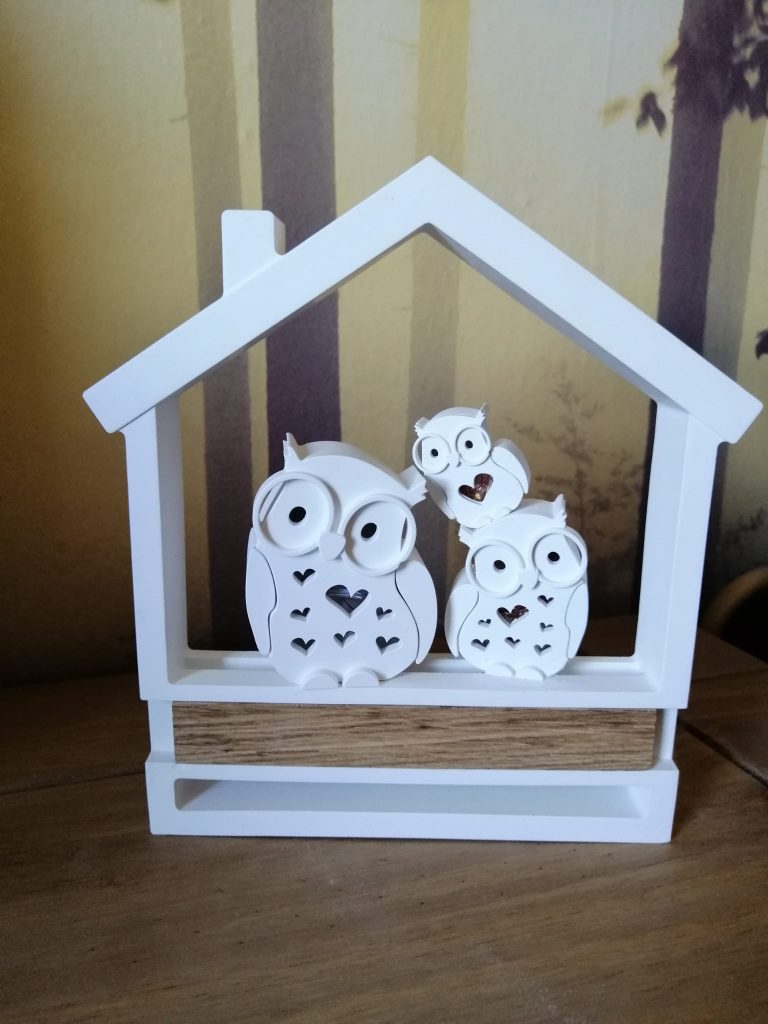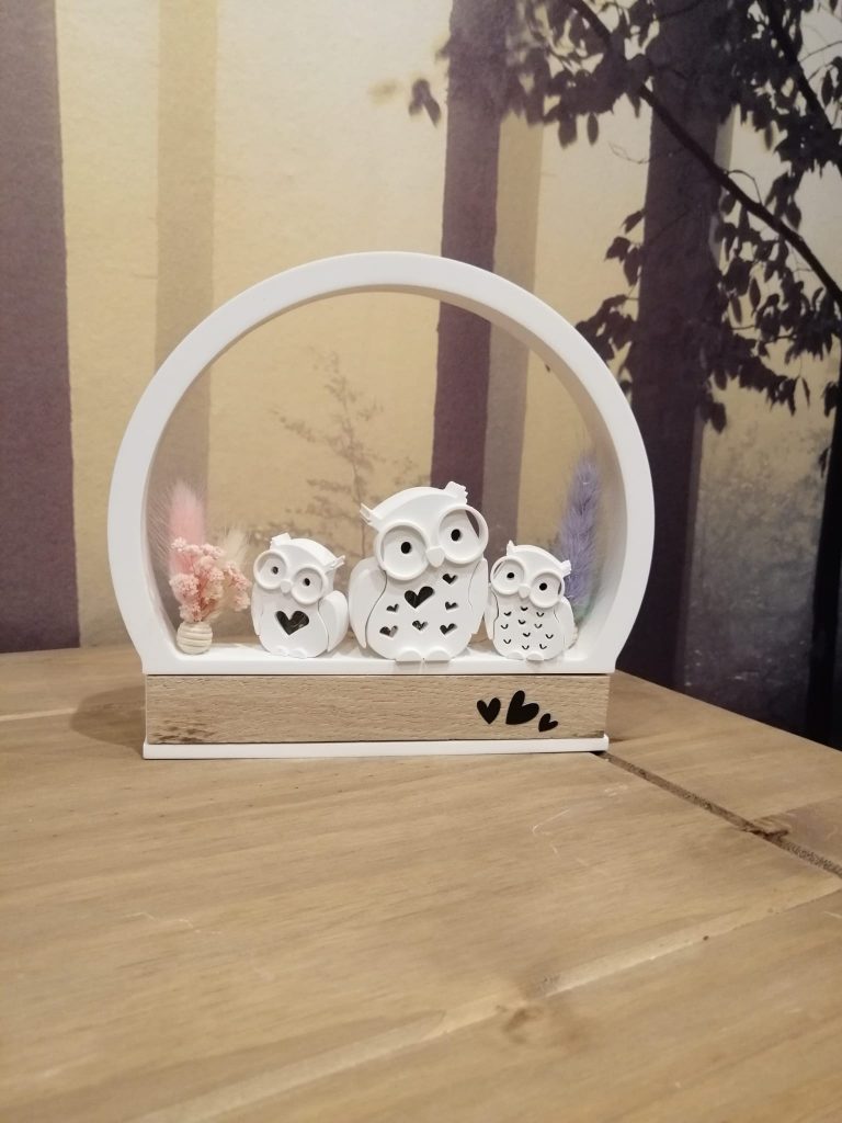 Standhaus mit eine 8cm Eule, eine 6cm Eule & 4cm Eule zum aufstellen in verschiedenen Ausführungen der Trockenblumen
