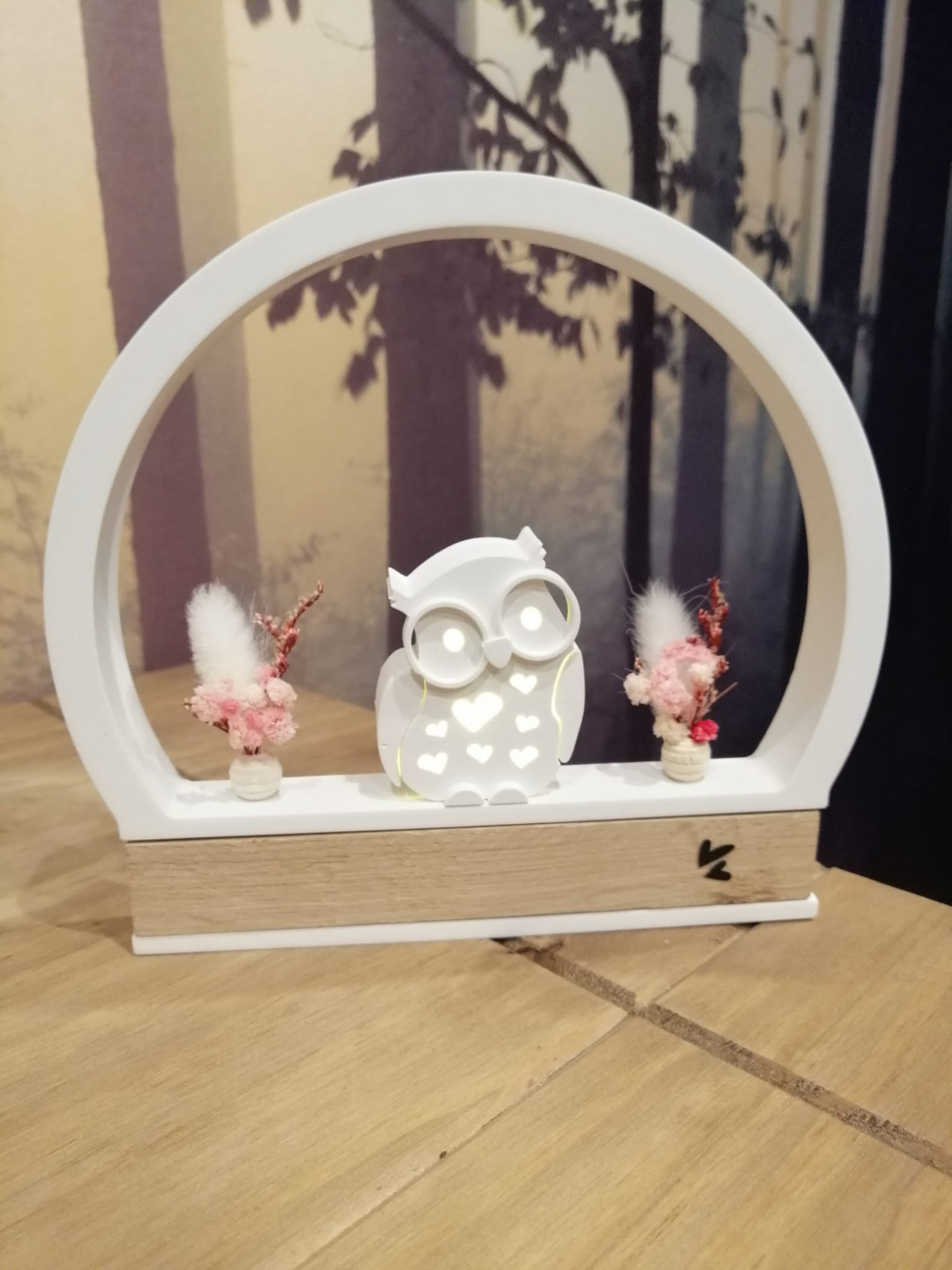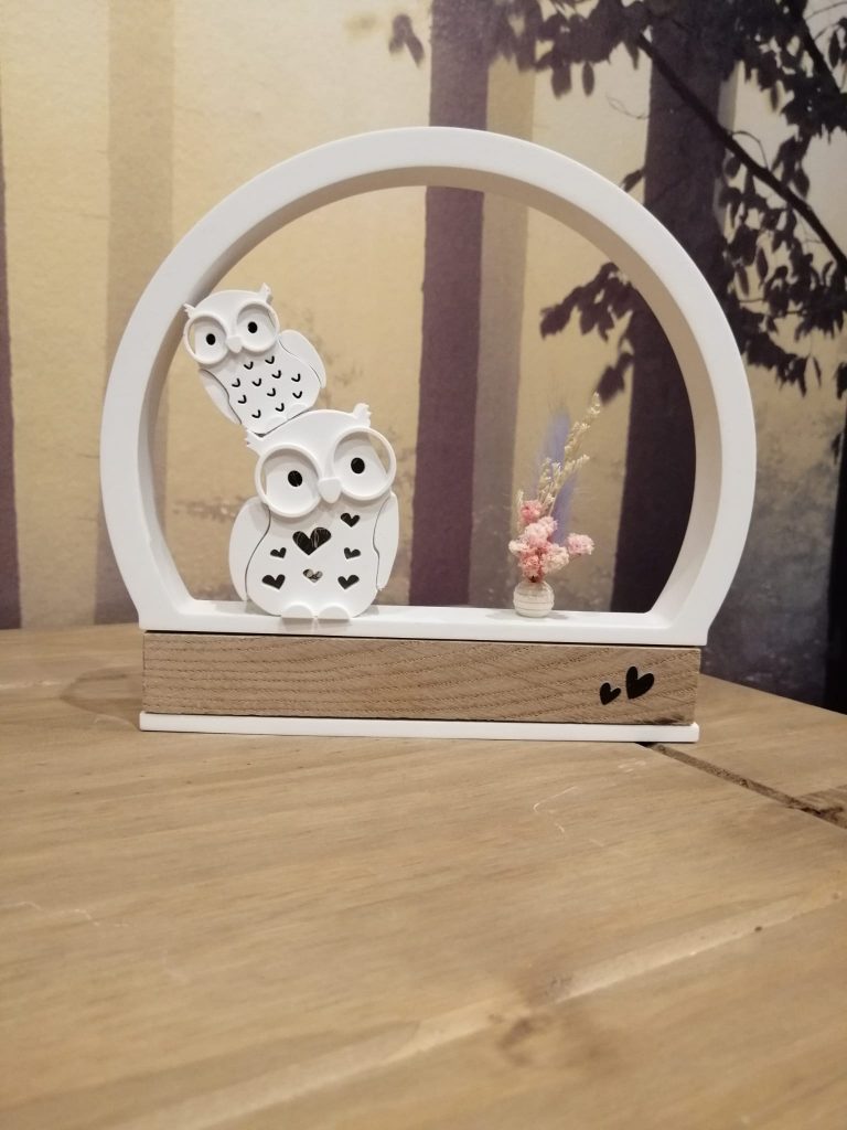 Standhaus mit eine 6cm Eule & eine 4cm Eule zum aufstellen in verschiedenen Ausführungen der Trockenblumen